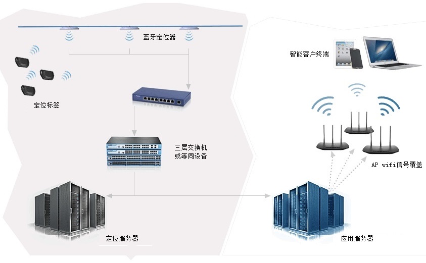 蓝牙室内无线定位系统是基于分布式蓝牙定位技术和蜂窝网无线数据传输技术,在需要定位的应用场景内(如室内等)布设分布式蓝牙信标,形成无线定位环境,人员或物品佩戴定位器(内嵌于对讲机、安全帽、胸牌等),从而能够实现对现场人员、车辆、重要物资以及现场作业的全方位可视化管理,从而有效提升安全管理水平。